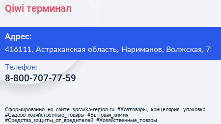 Qiwi, терминал по адресу 416111, Астраханская область, Нариманов, Волжская, 7 в дальнейшем Организация, размещена в следующих категориях: