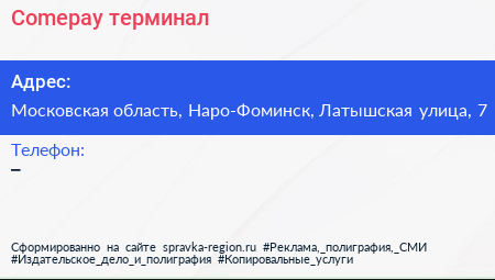 Comepay, терминал по адресу Московская область, Наро-Фоминск, Латышская улица, 7 в дальнейшем Организация, размещена в следующих категориях: