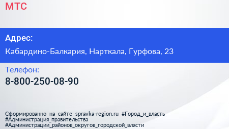 МТС по адресу Кабардино-Балкария, Нарткала, Гурфова, 23 в дальнейшем Организация, размещена в следующих категориях: