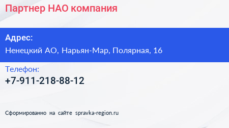 Партнер НАО, компания по адресу Ненецкий АО, Нарьян-Мар, Полярная, 16 в дальнейшем Организация, размещена в следующих категориях: