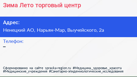 Зима Лето, торговый центр по адресу Ненецкий АО, Нарьян-Мар, Выучейского, 2а в дальнейшем Организация, размещена в следующих категориях: