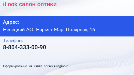 iLook, салон оптики по адресу Ненецкий АО, Нарьян-Мар, Полярная, 16 в дальнейшем Организация, размещена в следующих категориях: