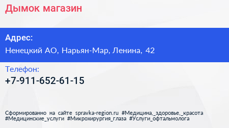 Дымок, магазин по адресу Ненецкий АО, Нарьян-Мар, Ленина, 42 в дальнейшем Организация, размещена в следующих категориях: