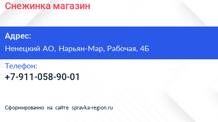 Снежинка, магазин по адресу Ненецкий АО, Нарьян-Мар, Рабочая, 4Б в дальнейшем Организация, размещена в следующих категориях: