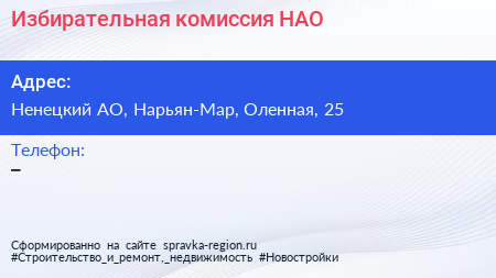 Избирательная комиссия НАО по адресу Ненецкий АО, Нарьян-Мар, Оленная, 25 в дальнейшем Организация, размещена в следующих категориях: