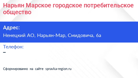 Нарьян-Марское городское потребительское общество по адресу Ненецкий АО, Нарьян-Мар, Смидовича, 6а в дальнейшем Организация, размещена в следующих категориях: