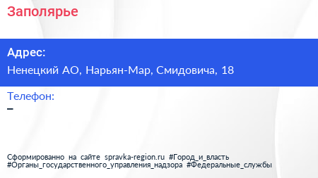 Заполярье по адресу Ненецкий АО, Нарьян-Мар, Смидовича, 18 в дальнейшем Организация, размещена в следующих категориях:
