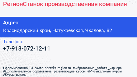 РегионСтанок, производственная компания по адресу Краснодарский край, Натухаевская, Чкалова, 82 в дальнейшем Организация, размещена в следующих категориях: