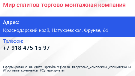 Мир сплитов, торгово-монтажная компания по адресу Краснодарский край, Натухаевская, Фрунзе, 61 в дальнейшем Организация, размещена в следующих категориях: