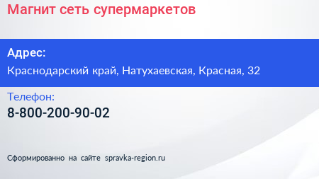 Магнит, сеть супермаркетов по адресу Краснодарский край, Натухаевская, Красная, 32 в дальнейшем Организация, размещена в следующих категориях: