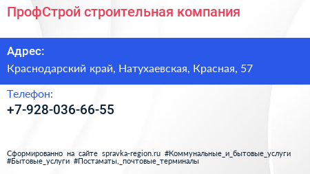 ПрофСтрой, строительная компания по адресу Краснодарский край, Натухаевская, Красная, 57 в дальнейшем Организация, размещена в следующих категориях: