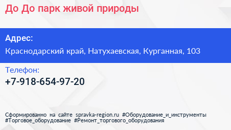 До-До, парк живой природы по адресу Краснодарский край, Натухаевская, Курганная, 103 в дальнейшем Организация, размещена в следующих категориях: