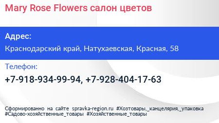 Mary Rose Flowers, салон цветов по адресу Краснодарский край, Натухаевская, Красная, 58 в дальнейшем Организация, размещена в следующих категориях: