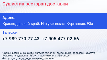Сушистик, ресторан доставки по адресу Краснодарский край, Натухаевская, Курганная, 93а в дальнейшем Организация, размещена в следующих категориях: