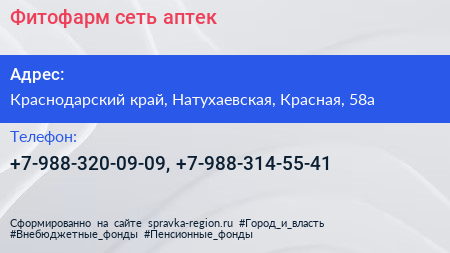 Фитофарм, сеть аптек по адресу Краснодарский край, Натухаевская, Красная, 58а в дальнейшем Организация, размещена в следующих категориях: