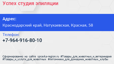 Успех, студия эпиляции по адресу Краснодарский край, Натухаевская, Красная, 58 в дальнейшем Организация, размещена в следующих категориях: