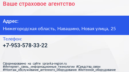 Ваше страховое агентство по адресу Нижегородская область, Навашино, Новая улица, 25 в дальнейшем Организация, размещена в следующих категориях: