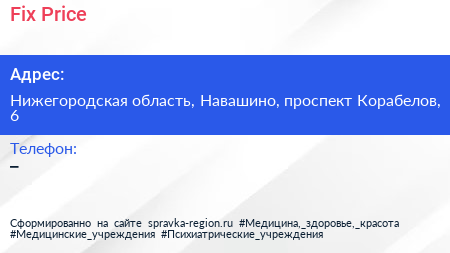 Fix Price по адресу Нижегородская область, Навашино, проспект Корабелов, 6 в дальнейшем Организация, размещена в следующих категориях: