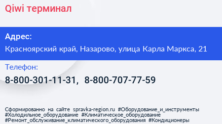 Qiwi, терминал по адресу Красноярский край, Назарово, улица Карла Маркса, 21 в дальнейшем Организация, размещена в следующих категориях: