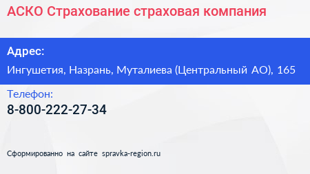 АСКО-Страхование, страховая компания по адресу Ингушетия, Назрань, Муталиева (Центральный АО), 165 в дальнейшем Организация, размещена в следующих категориях: