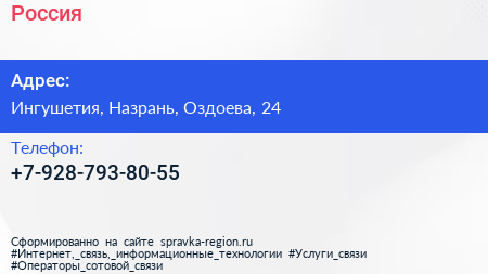 Россия по адресу Ингушетия, Назрань, Оздоева, 24 в дальнейшем Организация, размещена в следующих категориях: