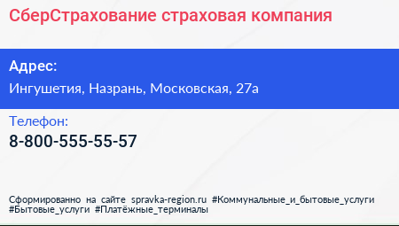 СберСтрахование, страховая компания по адресу Ингушетия, Назрань, Московская, 27а в дальнейшем Организация, размещена в следующих категориях: