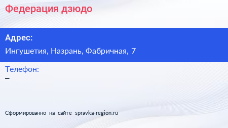 Федерация дзюдо по адресу Ингушетия, Назрань, Фабричная, 7 в дальнейшем Организация, размещена в следующих категориях: