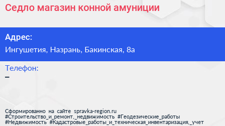 Седло, магазин конной амуниции по адресу Ингушетия, Назрань, Бакинская, 8а в дальнейшем Организация, размещена в следующих категориях: