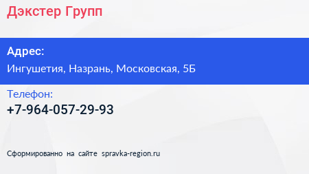 Дэкстер Групп по адресу Ингушетия, Назрань, Московская, 5Б в дальнейшем Организация, размещена в следующих категориях: