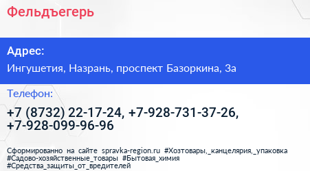 Фельдъегерь по адресу Ингушетия, Назрань, проспект Базоркина, 3а в дальнейшем Организация, размещена в следующих категориях: