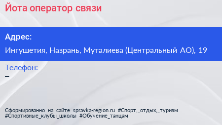 Йота, оператор связи по адресу Ингушетия, Назрань, Муталиева (Центральный АО), 19 в дальнейшем Организация, размещена в следующих категориях: