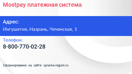 Mostpay, платежная система по адресу Ингушетия, Назрань, Чеченская, 1 в дальнейшем Организация, размещена в следующих категориях:
