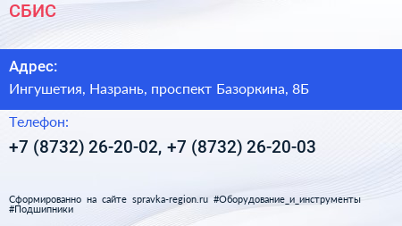 СБИС по адресу Ингушетия, Назрань, проспект Базоркина, 8Б в дальнейшем Организация, размещена в следующих категориях: