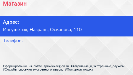 Магазин по адресу Ингушетия, Назрань, Осканова, 110 в дальнейшем Организация, размещена в следующих категориях:
