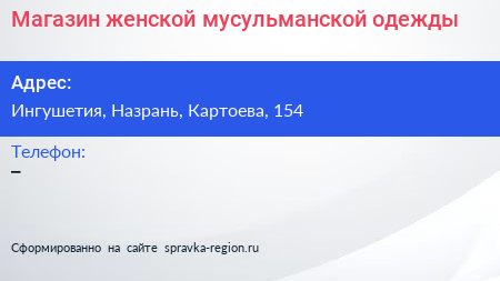 Магазин женской мусульманской одежды по адресу Ингушетия, Назрань, Картоева, 154 в дальнейшем Организация, размещена в следующих категориях: