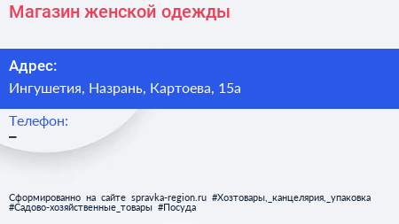 Магазин женской одежды по адресу Ингушетия, Назрань, Картоева, 15а в дальнейшем Организация, размещена в следующих категориях: