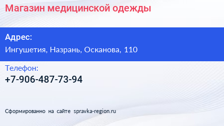 Магазин медицинской одежды по адресу Ингушетия, Назрань, Осканова, 110 в дальнейшем Организация, размещена в следующих категориях: