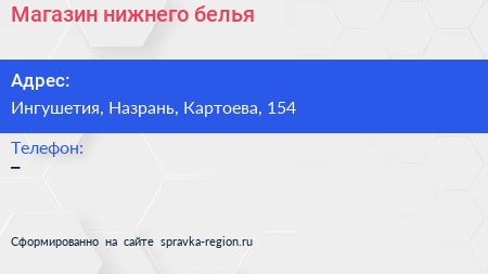 Магазин нижнего белья по адресу Ингушетия, Назрань, Картоева, 154 в дальнейшем Организация, размещена в следующих категориях: