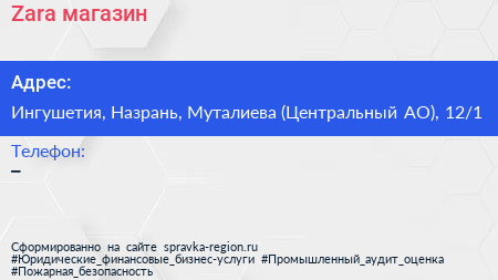 Zara, магазин по адресу Ингушетия, Назрань, Муталиева (Центральный АО), 12/1 в дальнейшем Организация, размещена в следующих категориях: