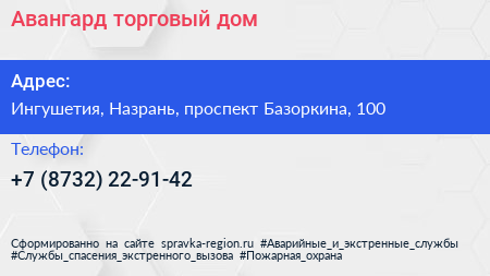 Авангард, торговый дом по адресу Ингушетия, Назрань, проспект Базоркина, 100 в дальнейшем Организация, размещена в следующих категориях: