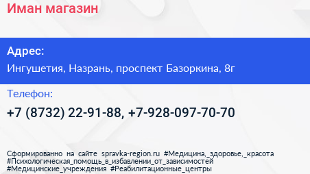 Иман, магазин по адресу Ингушетия, Назрань, проспект Базоркина, 8г в дальнейшем Организация, размещена в следующих категориях: