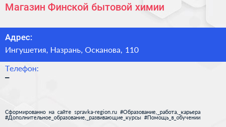 Магазин Финской бытовой химии по адресу Ингушетия, Назрань, Осканова, 110 в дальнейшем Организация, размещена в следующих категориях: