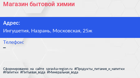 Магазин бытовой химии по адресу Ингушетия, Назрань, Московская, 25ж в дальнейшем Организация, размещена в следующих категориях: