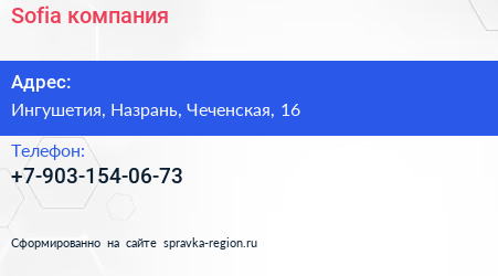 Sofia, компания по адресу Ингушетия, Назрань, Чеченская, 16 в дальнейшем Организация, размещена в следующих категориях: