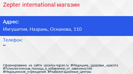 Zepter international, магазин по адресу Ингушетия, Назрань, Осканова, 110 в дальнейшем Организация, размещена в следующих категориях: