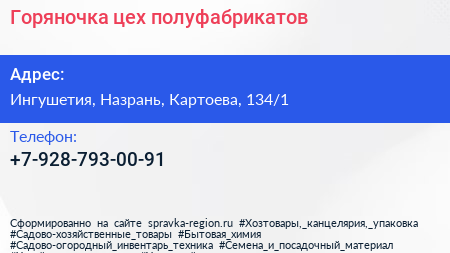Горяночка, цех полуфабрикатов по адресу Ингушетия, Назрань, Картоева, 134/1 в дальнейшем Организация, размещена в следующих категориях: