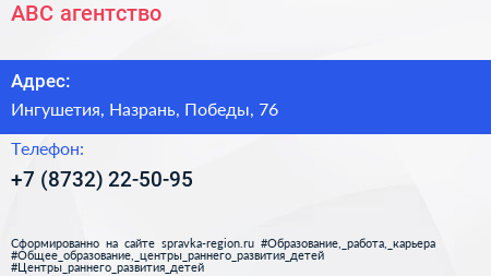 АВС, агентство по адресу Ингушетия, Назрань, Победы, 76 в дальнейшем Организация, размещена в следующих категориях: