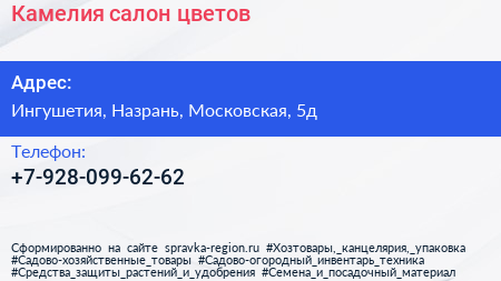 Камелия, салон цветов по адресу Ингушетия, Назрань, Московская, 5д в дальнейшем Организация, размещена в следующих категориях:
