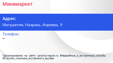 Минимаркет по адресу Ингушетия, Назрань, Ахриева, 9 в дальнейшем Организация, размещена в следующих категориях: