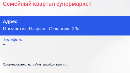 Семейный квартал, супермаркет по адресу Ингушетия, Назрань, Осканова, 33а в дальнейшем Организация, размещена в следующих категориях: